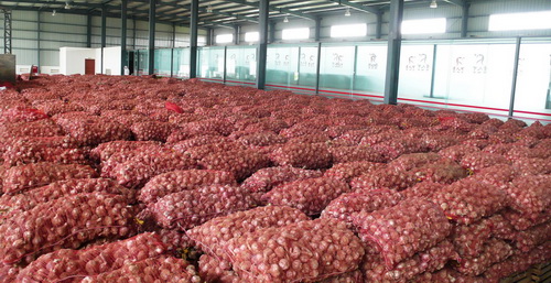 在倉(cāng)庫(kù)、車(chē)間,質(zhì)檢人員、搬運(yùn)工人來(lái)往穿梭于“蒜山”之間。